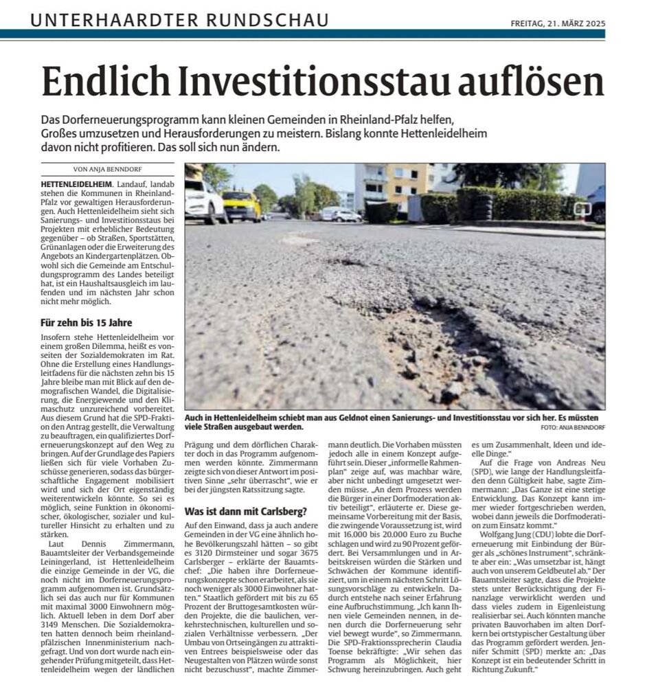 Artikel der Rheinpfalz vom 21.03.2025